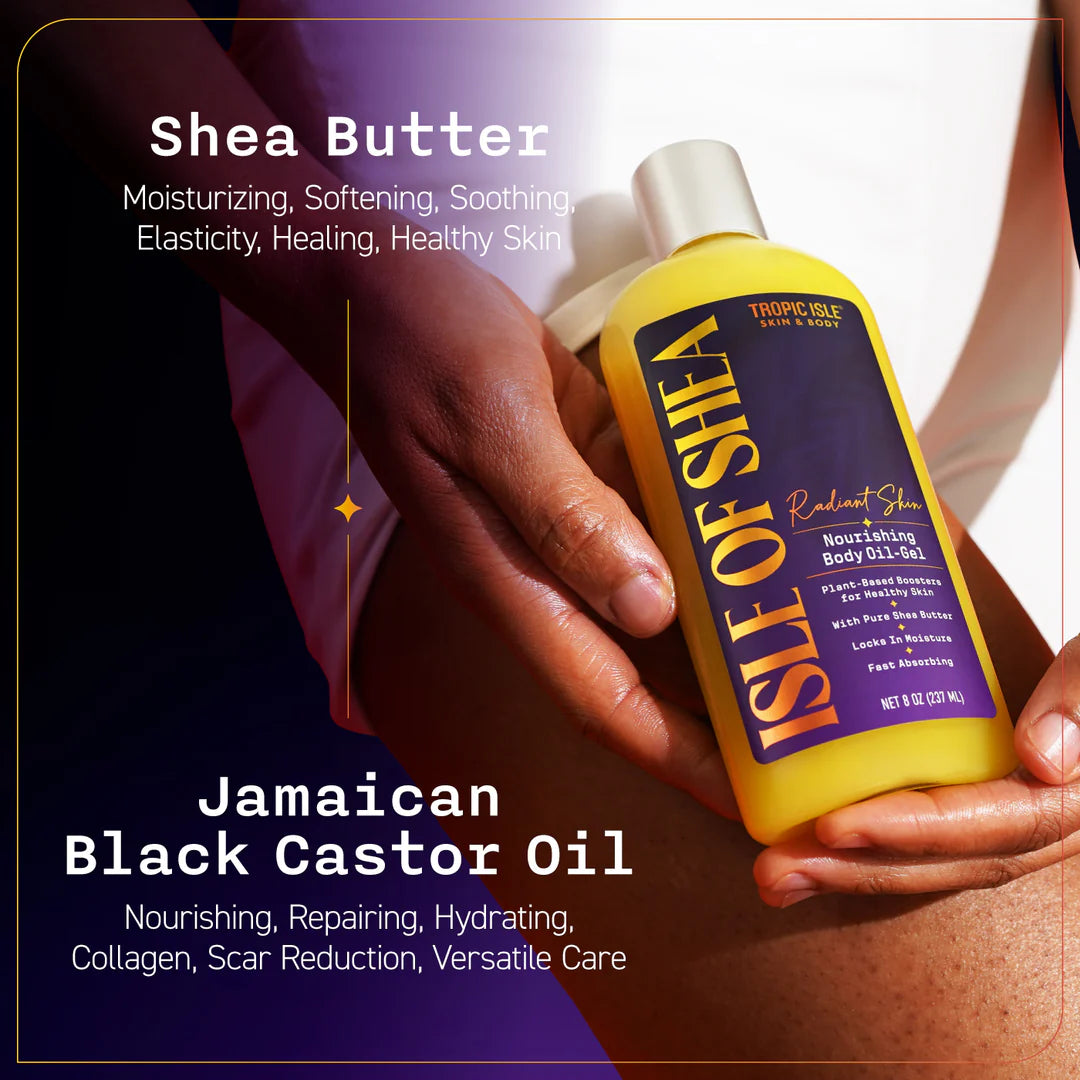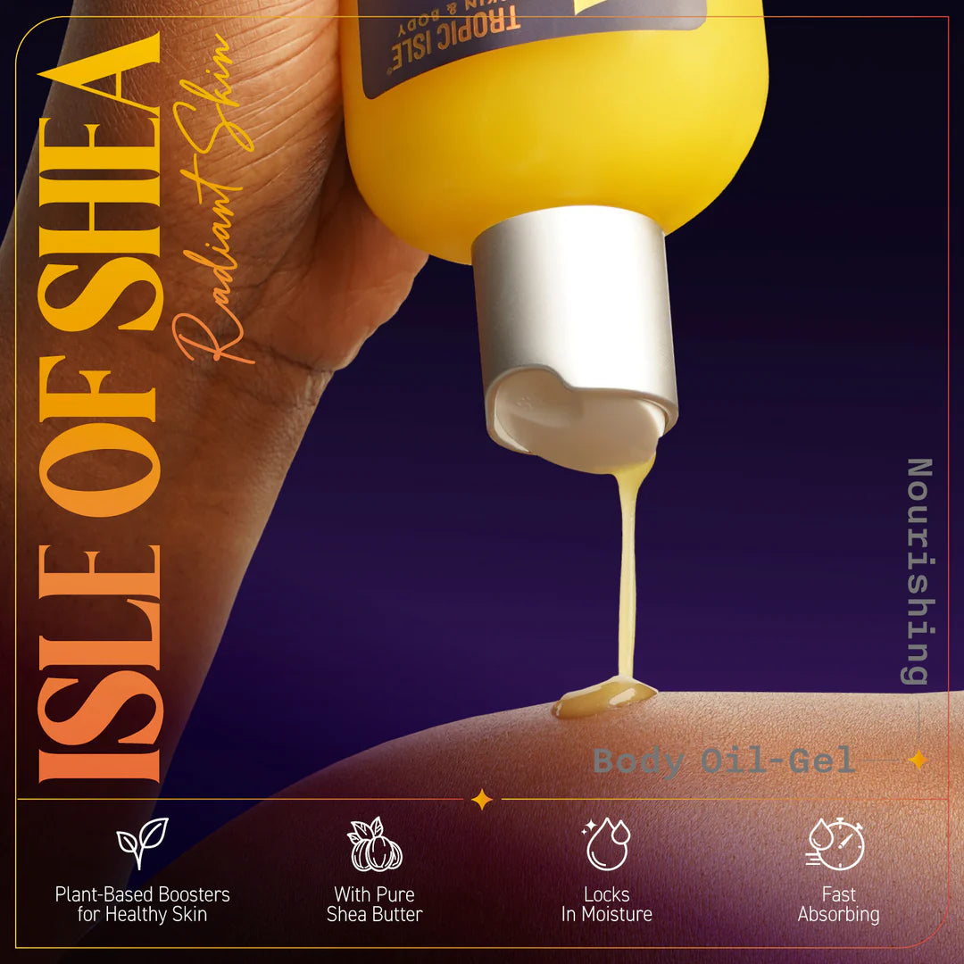 Experience the ultimate in nourishment with Tropical Isle Living ISLE OF SHEA Body Oil Gel. This luxurious formula combines the powerful benefits of Jamaican Black Castor Oil (JBCO) and Shea Butter to deeply nourish and replenish your skin. Fast-absorbing and non-greasy, it locks in moisture and helps to soothe dry, irritated skin, leaving you with soft, smooth, and radiant skin all day long. Treat your skin to the hydration and care it deserves with ISLE OF SHEA Body Oil Gel.
