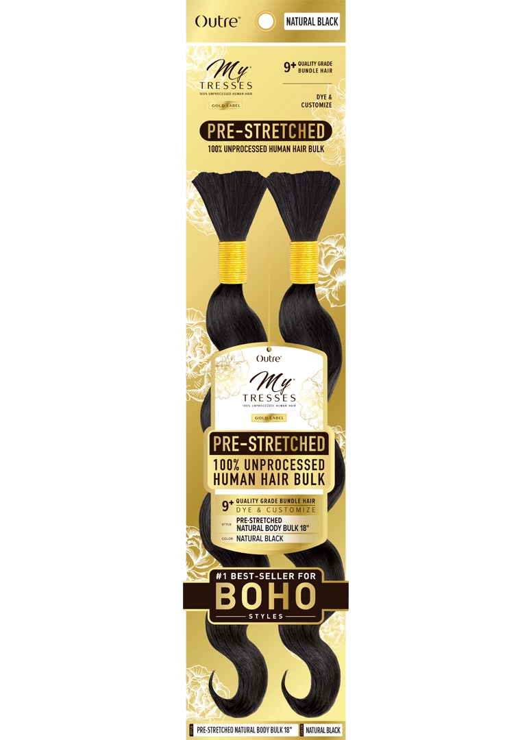 My Tresses Gold Label Prestretched 100% Human Hair Boho Bulk Body Wave 18in