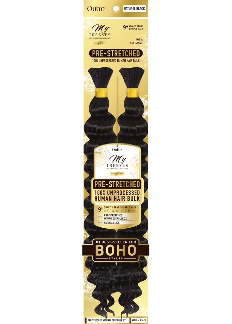 My Tresses Gold Label Prestretched 100% Human Hair Boho Bulk Deep Wave 18in