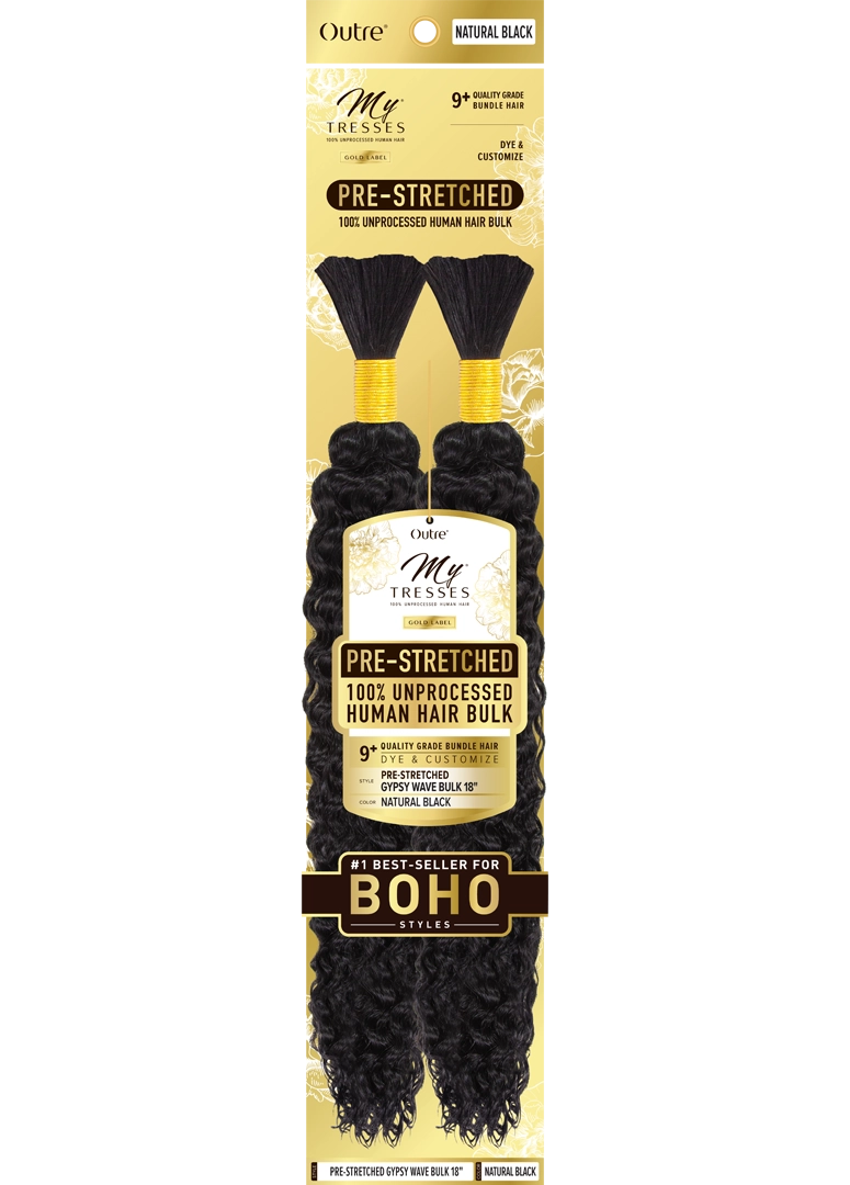 My Tresses Gold Label Prestretched 100% Human Hair Boho Bulk Gypsy Wave 18in
