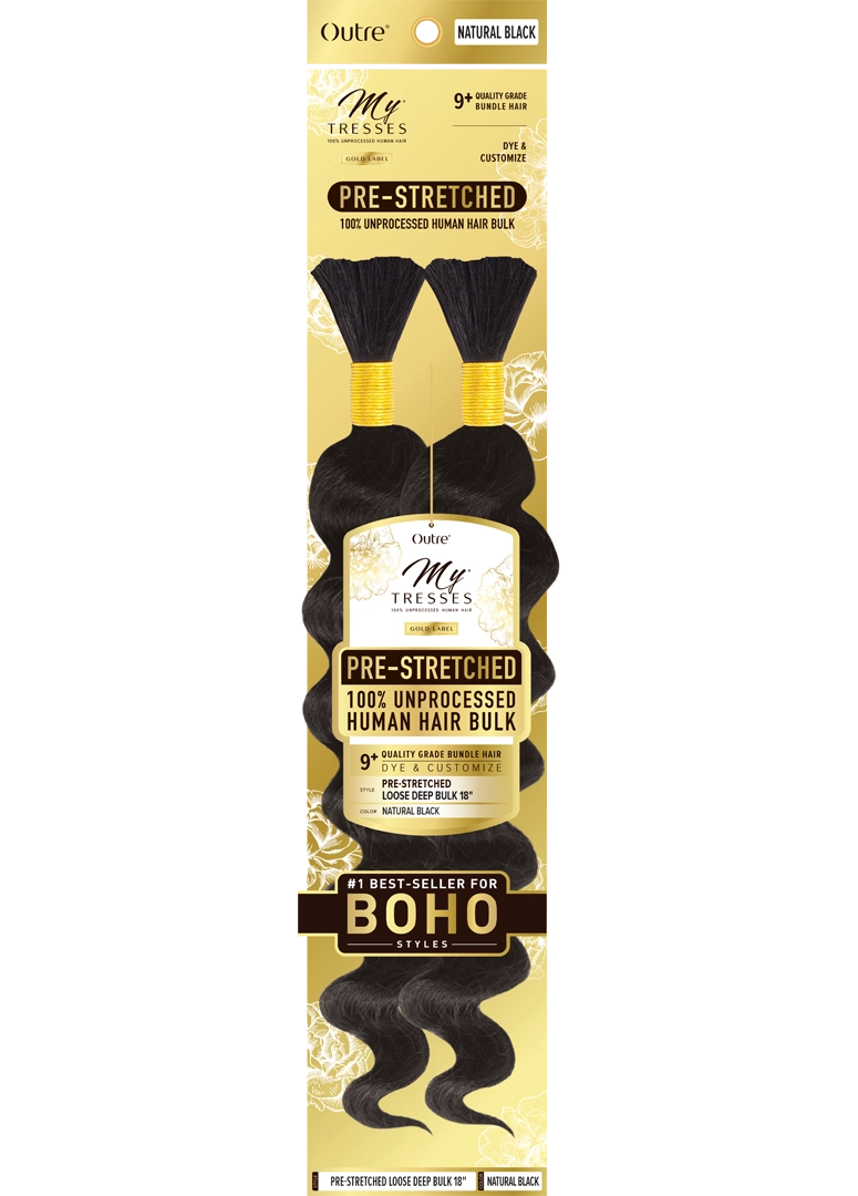 My Tresses Gold Label Prestretched 100% Human Hair Boho Bulk Loose Deep Wave 18in